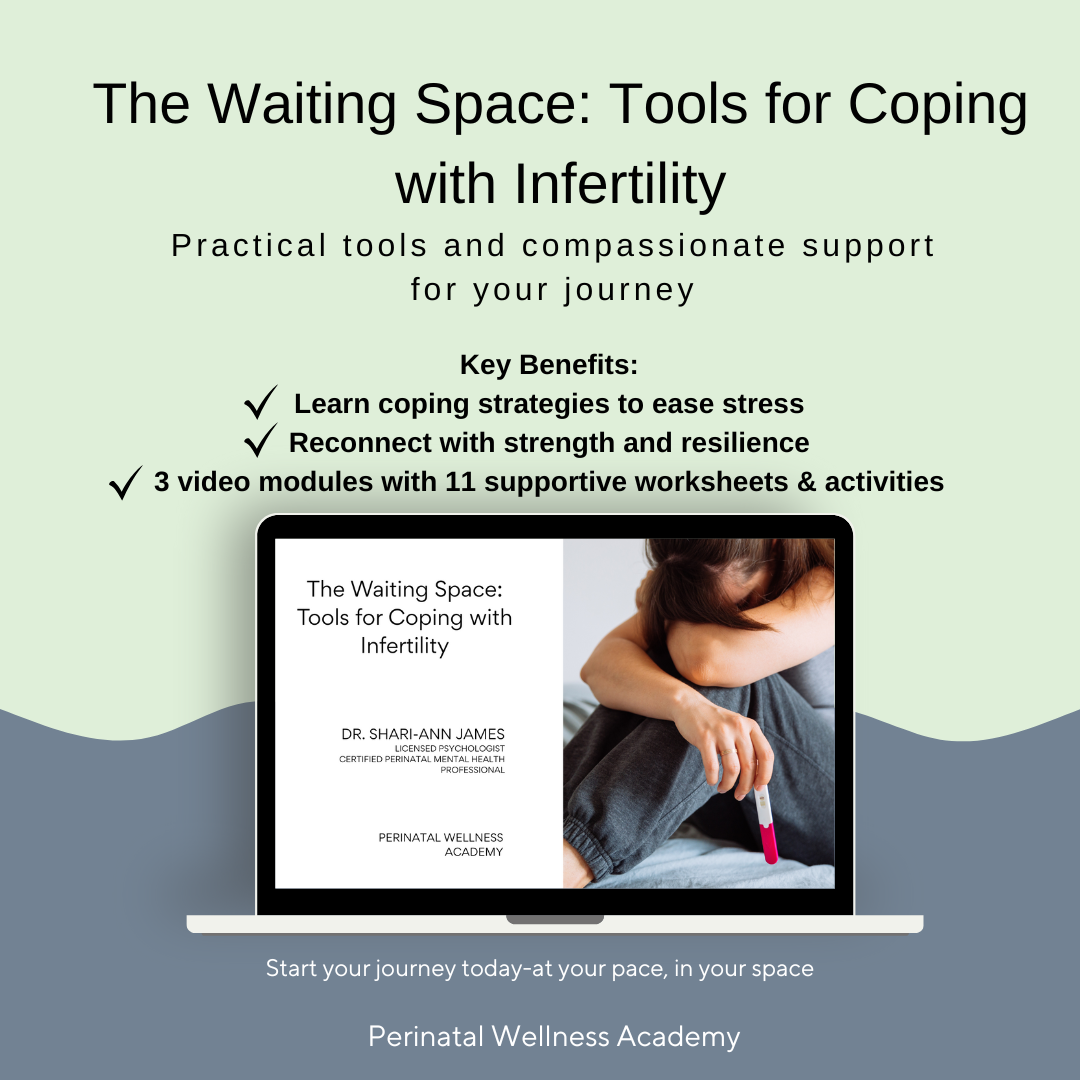 The Waiting Space: Tools for Coping with Infertility is a 50 minutes, 3-module course offering gentle guidance for navigating the emotional toll of infertility.