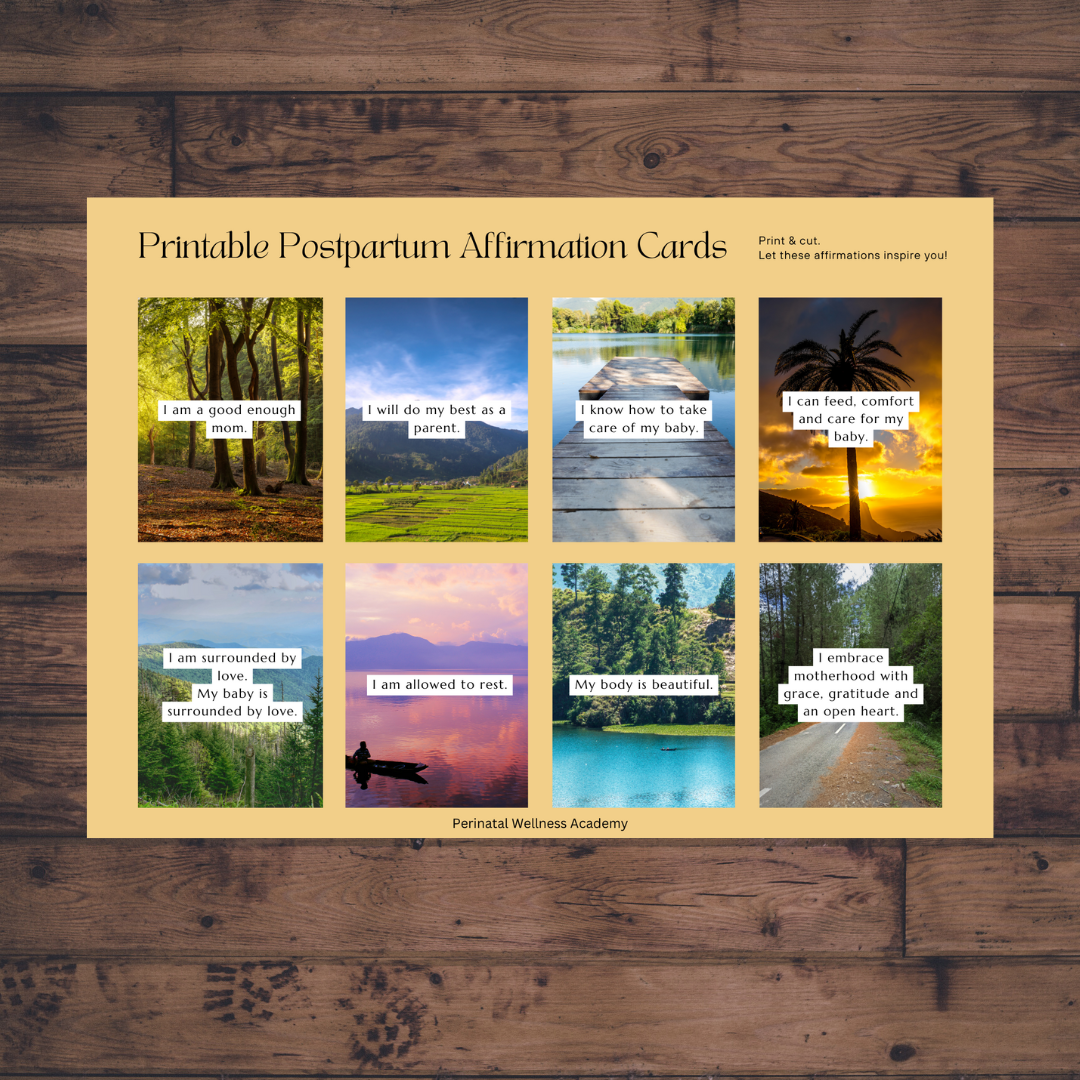Empower your postpartum journey with this set of 8 affirmation cards. Designed to uplift your mindset, these positive affirmations can help you cultivate a positive outlook, enhance your mood, and regain control of your thoughts during the postpartum period.